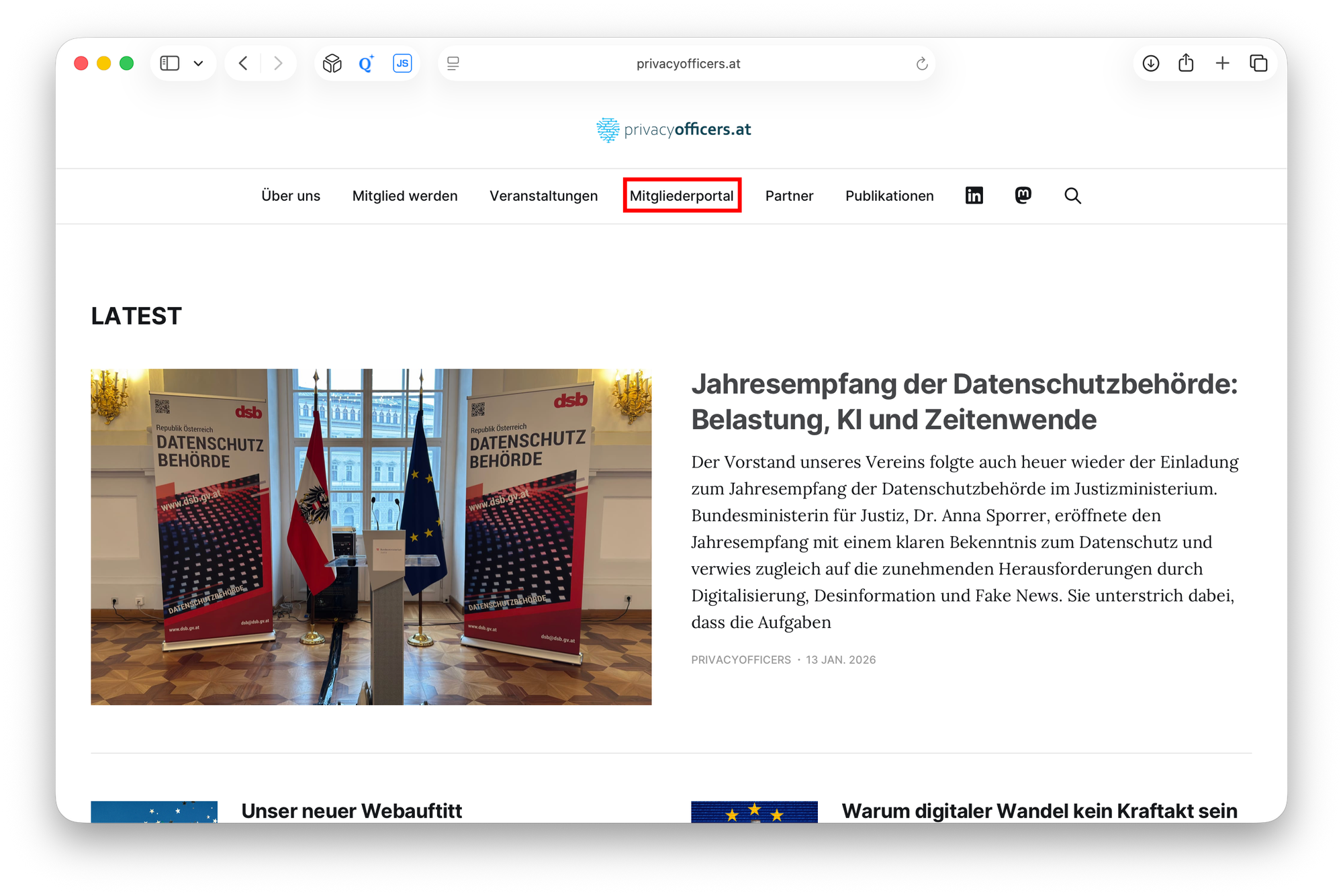 - Bevorstehende Termine: Übersichtliche Darstellung der kommenden Veranstaltungen von Privacyofficers und Partnerorganisationen.